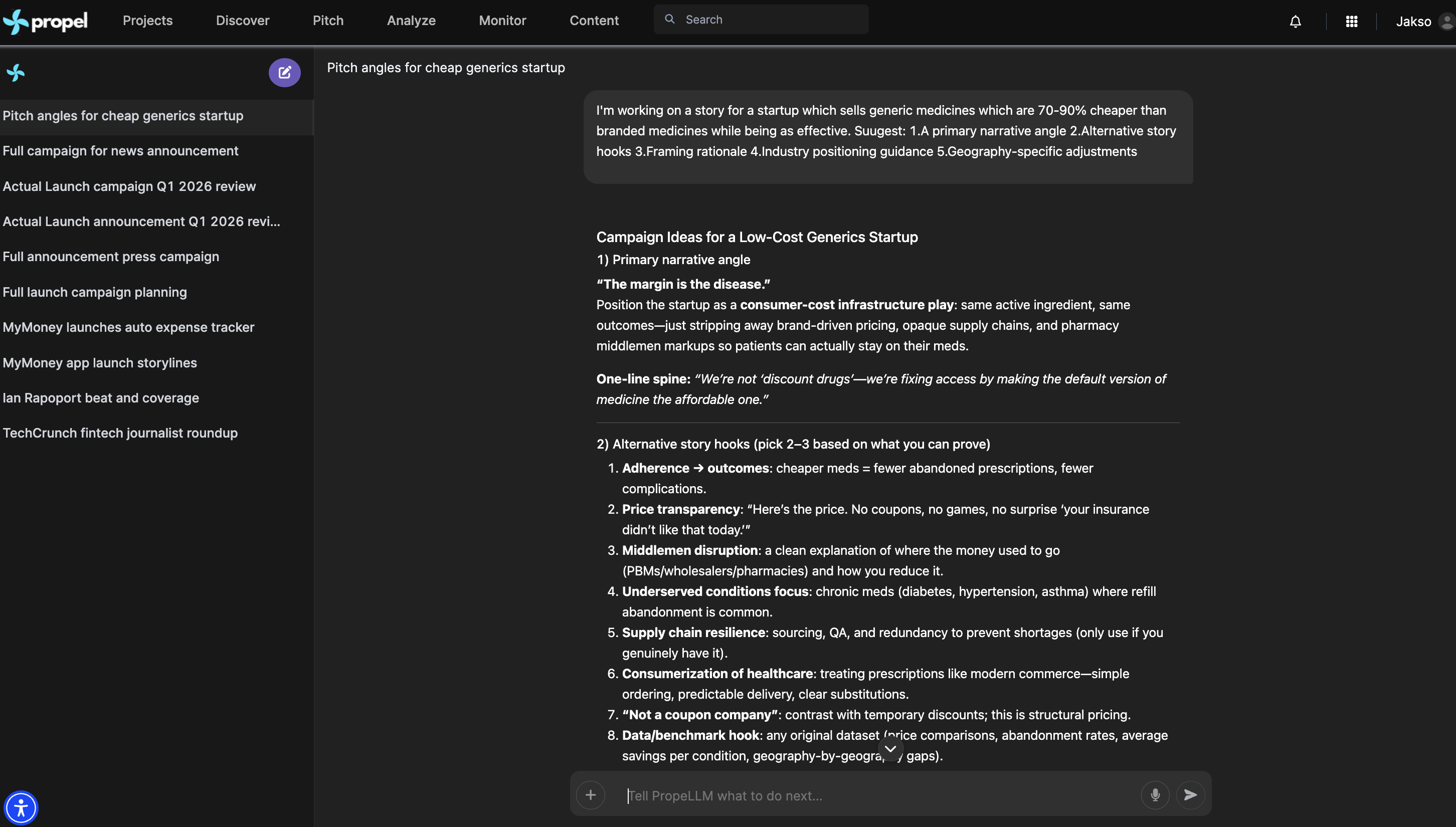 Strong media coverage starts with strong framing. PropeLLM helps you develop compelling story angles before you write a pitch or press release. Instead of jumping straight into drafting, you can refine the narrative first.